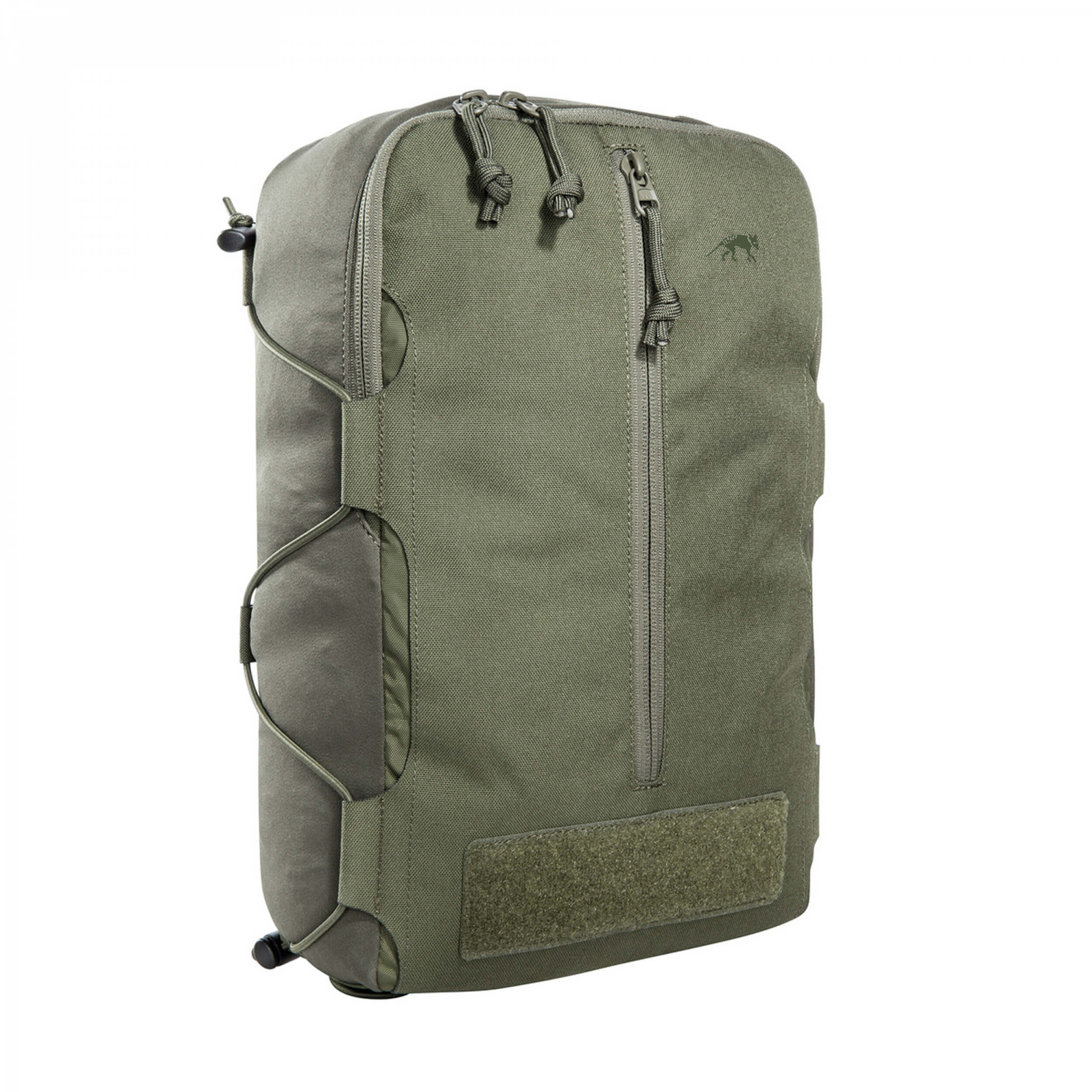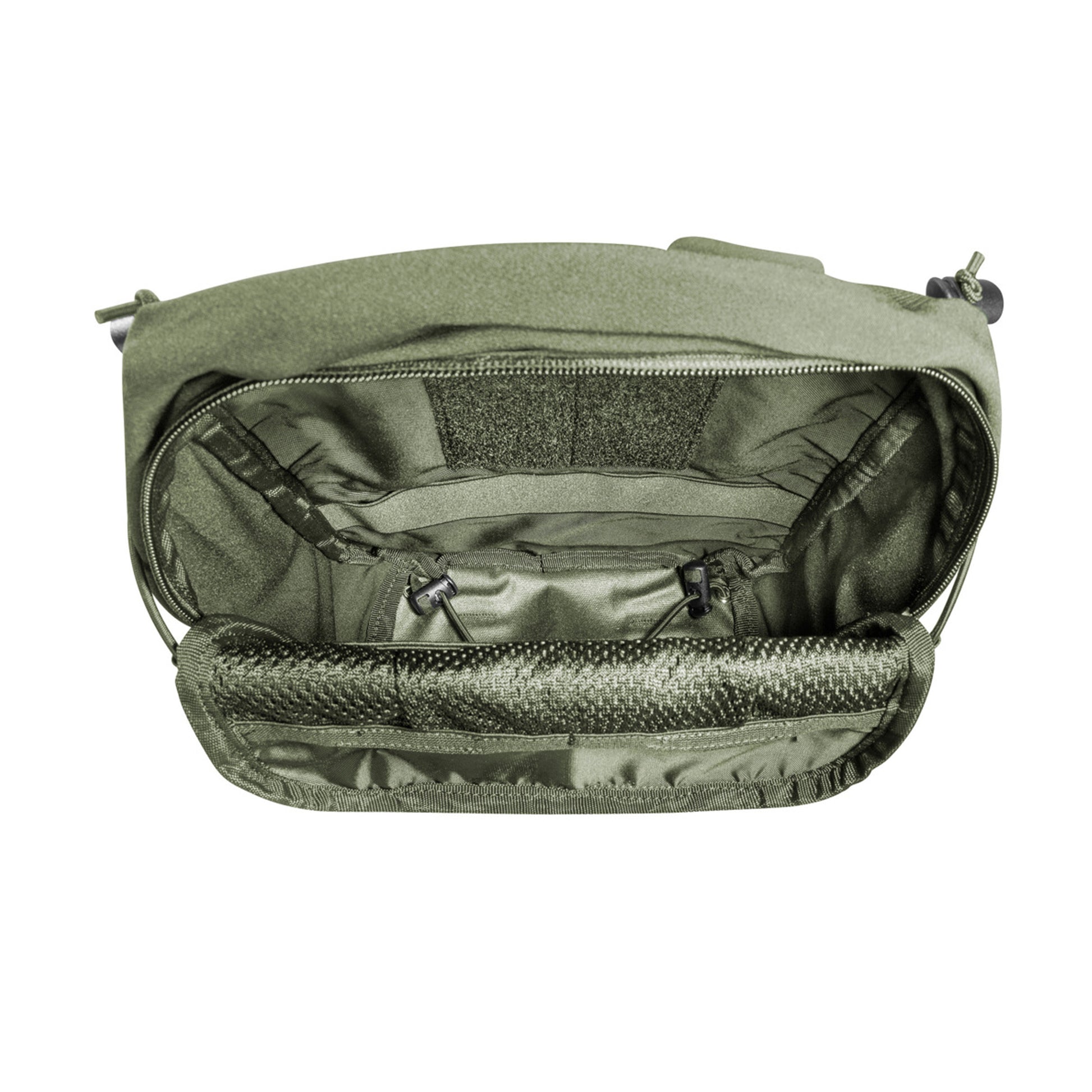 Die Tasmanian Tiger TT Tac Pouch 14 ist eine Zubehörtasche mit MOLLE-Reverse-System. Innen befindet sich MOLLE-Klett sowie eine Netztasche. Die Tasche ist zudem mit einer Trinksystemvorbereitung und dem entsprechenden Ausgang ausgestattet, und sie verfügt über eine Fronttasche mit vertikalem Reißverschluss. Die Seitenwände sind elastisch. Das gesamte System ist mit Bungee-Cord flach komprimierbar.