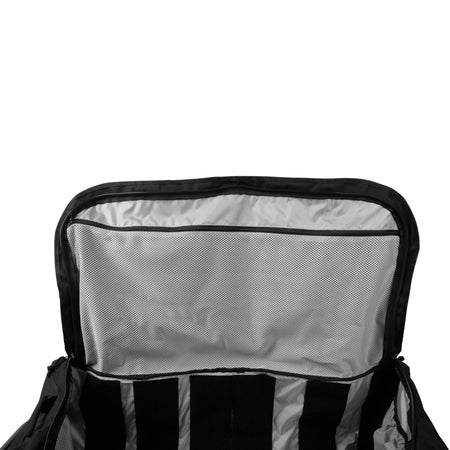 Der Trolley besitzt eine große Kofferöffnung zum leichten Beladen. Auf der Außenseite befinden sich zwei Reißverschlusstaschen, außerdem ein MOLLE-System.