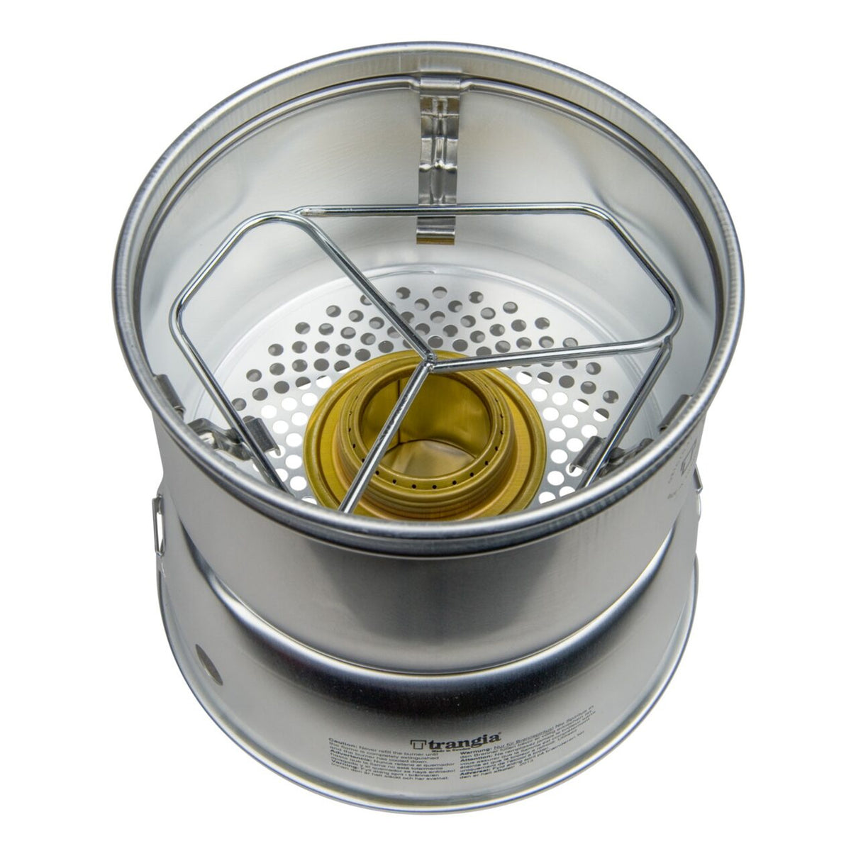 Der Pan Stand Kochereinsatz ist eine Halterung, die die Verwendung kleinerer Gefäße im Trangia-Ofen ermöglicht. Der Kochereinsatz wird innerhalb des Windschutzes auf den Stützen platziert. Passend für Trangia Sturmkocher 25 Large und 27 Small.