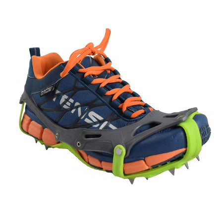 Die Veriga Schuhspikes Run Track eignen sich speziell für Wanderer und Läufer, die sich gerne sicher auf verschneiten und vereisten Geländen bewegen. Sie sind mit Zacken aus gehärtetem Edelstahl ausgestattet, die einen aggressiven Griff gewährleisten. Die Silikonkonstruktion liegt eng am Schuh an, sodass die Spikes nicht von der Sohle des Schuhs bewegen bzw. schlupfen können. Die spezielle Form des Fersenbereichs verhindert das Rutschen und gewährleistet Stabilität beim Auf- und Abstieg oder Berglaufen. Geeignet zum Joggen und Sprinten.