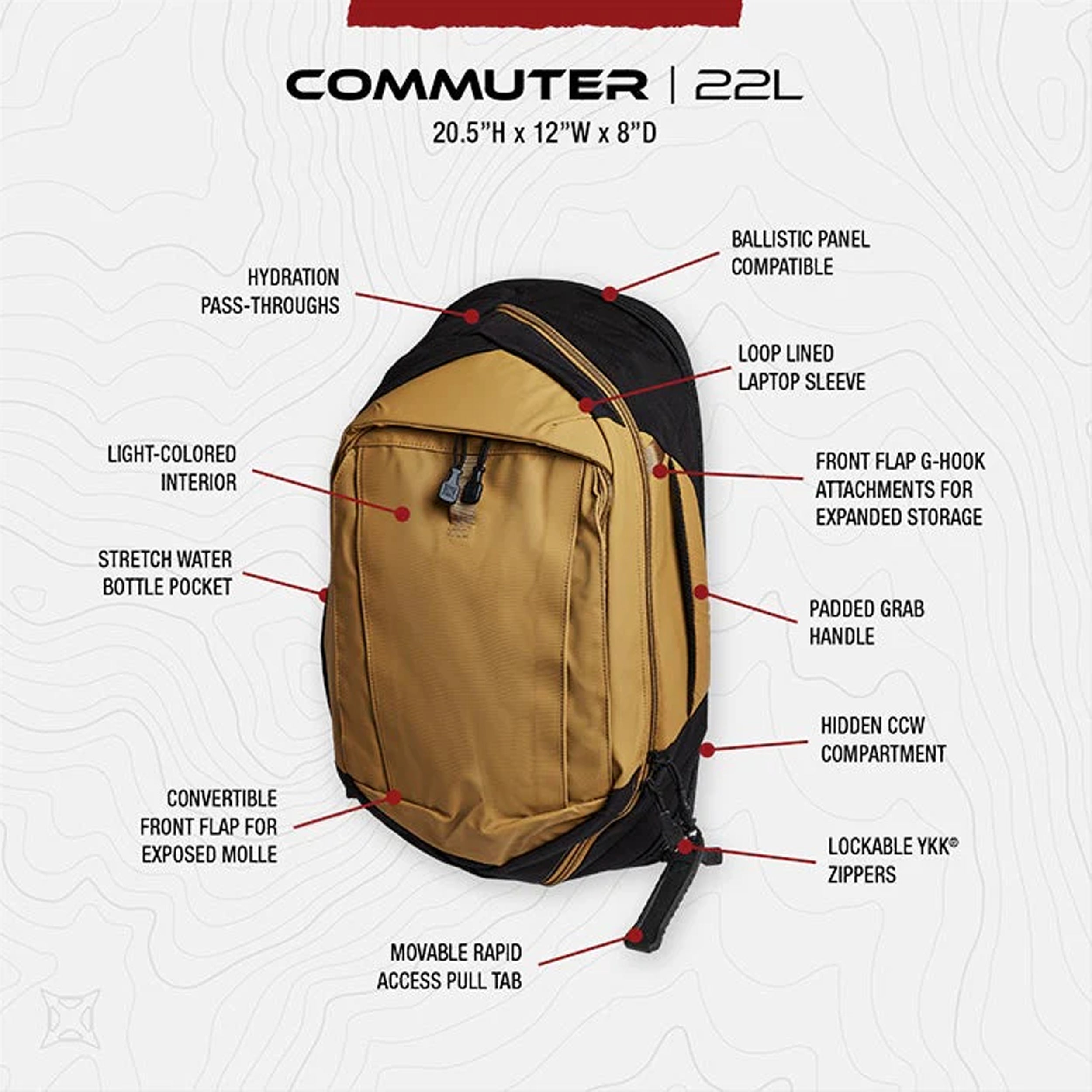 - Gatekeeper G-Haken verhindert ein unbeabsichtigtes Freilegen der im CCW-Fach verstauten Ausrüstung