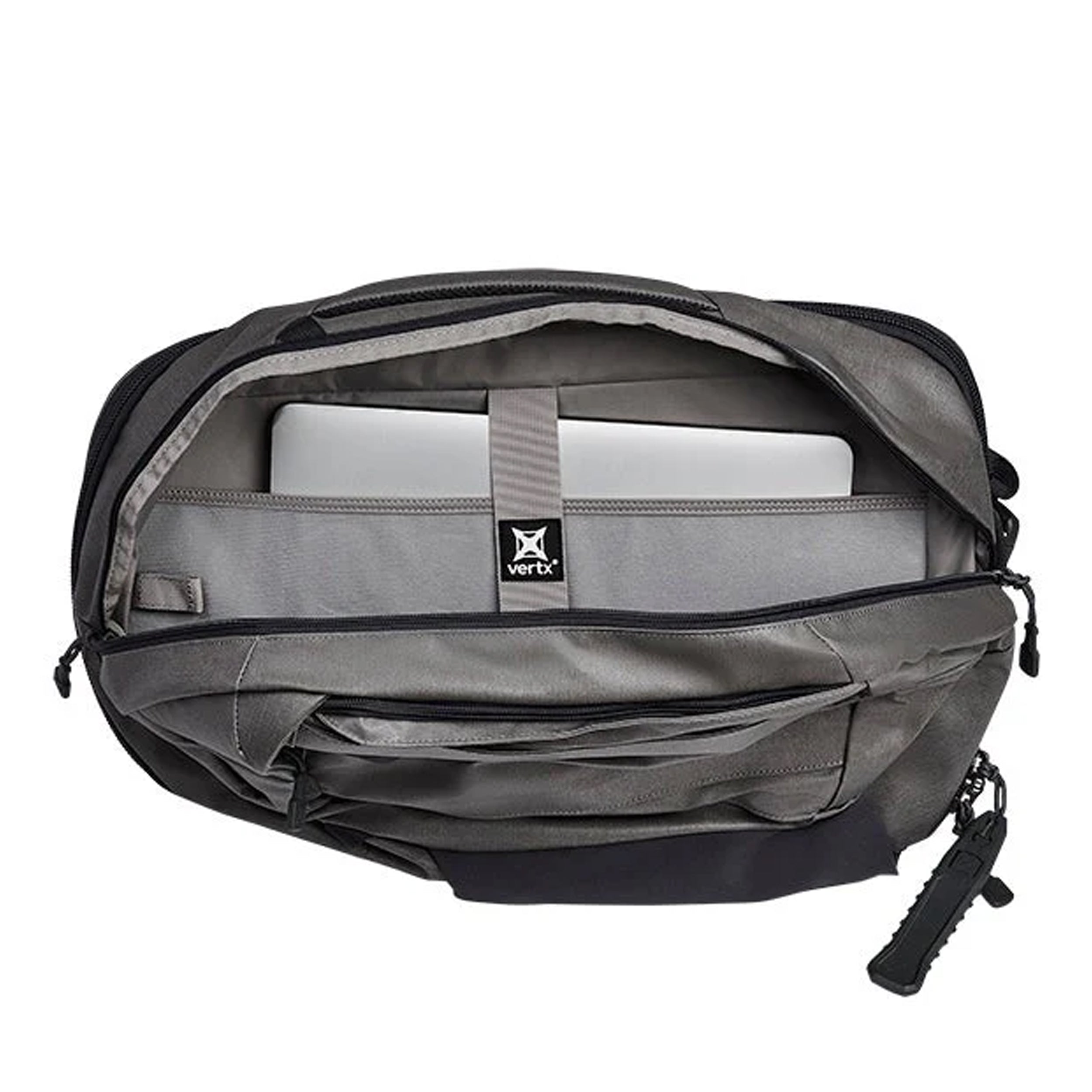 Das Hauptfach mit breiter Öffnung erleichtert den Zugriff auf die Ausrüstung und ist mit Flauschklett ausgekleidet, das zusätzliche Anpassungsmöglichkeiten mit Tactigami™ Ausrüstung bietet. Außerdem befindet sich im Hauptfach noch eine semitransparente Reißverschlusstasche und ein Laptop-Fach.