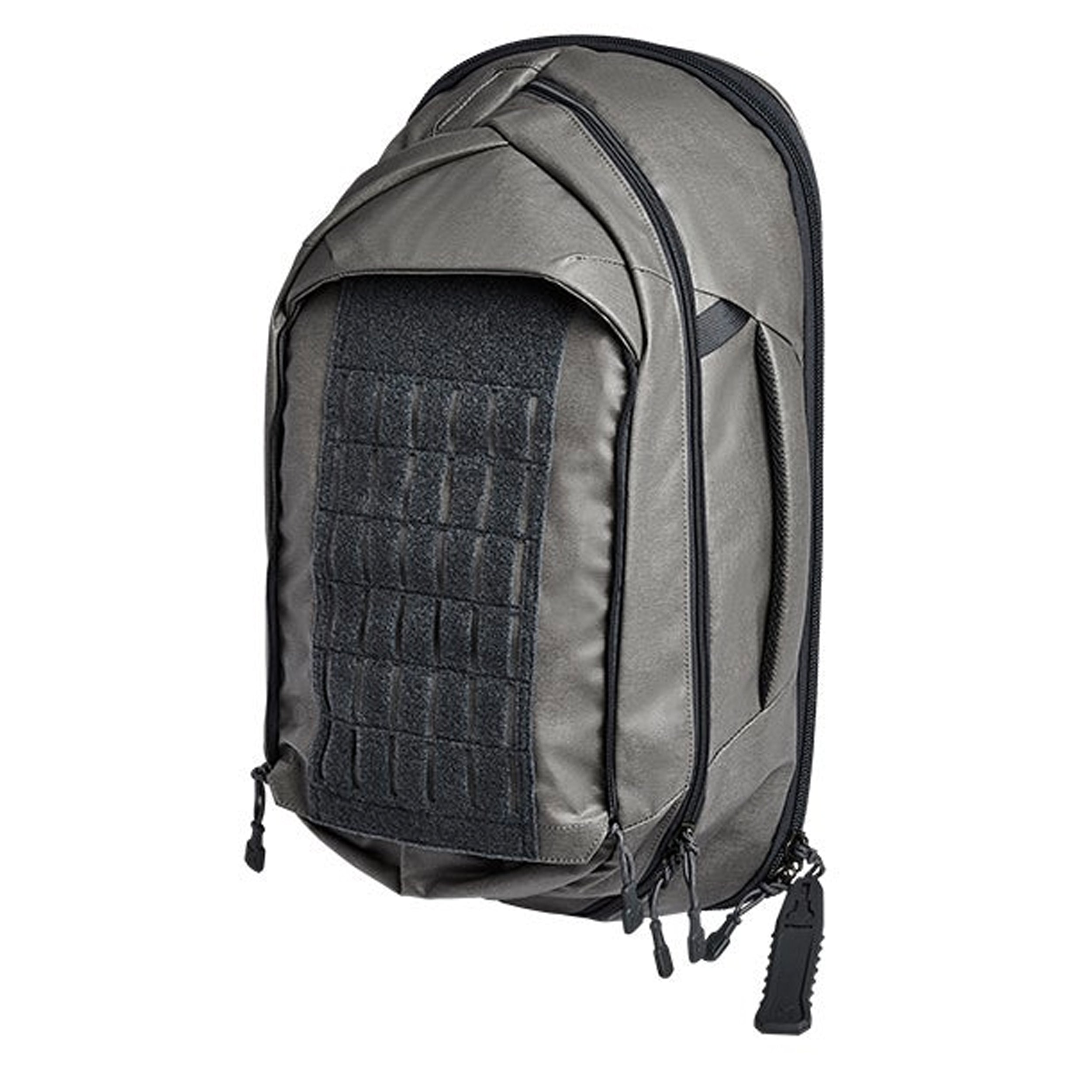 Auf der Front befindet sich eine verdeckte MOLLE-Klett Plattform. Die konvertierbare Frontklappe lässt sich blitzschnell öffnen und hinter der lasergeschnittenen MOLLE-Klett Plattform verstauen. So erhält man einen einfachen und schnellen Zugriff auf die benötigte Ausrüstung. Das Fach hinter der MOLLE-Klett Plattform eignet sich auch die Aufnahme einer ballistischen Platte.