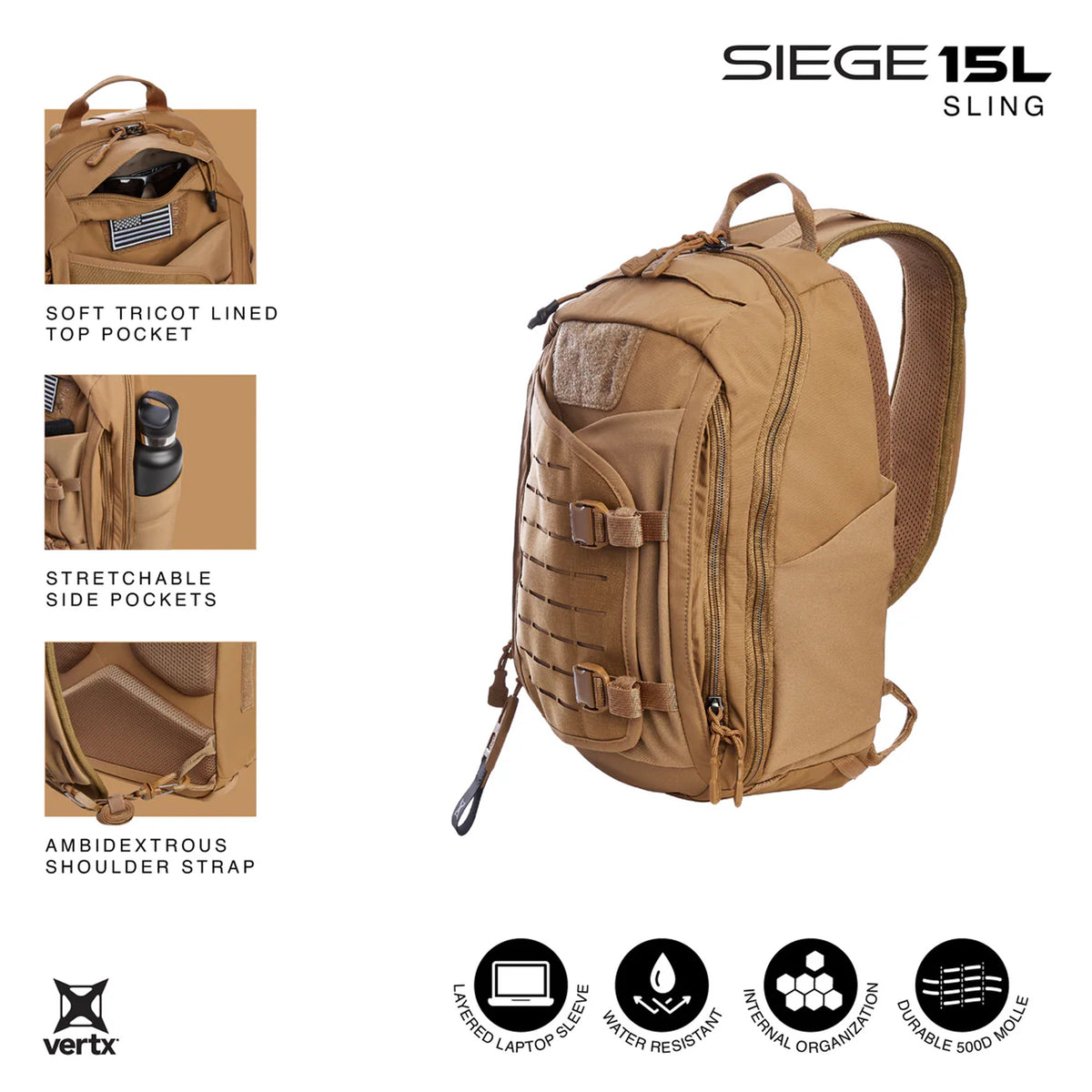 Jeder Tag ist eine Mission, und der Siege 15L Sling Bag von Vertx ist für jede Gelegenheit gerüstet. Jede Tasche, jeder Gurt, jeder Reißverschluss ist zweckmäßig und bereit, Deine Herausforderungen direkt anzugehen. Hergestellt aus einem leichten, aber widerstandsfähigen 330D-Außenmaterial, begleitet Dich dieser wasserabweisende Begleiter bei Regen und Sonnenschein.